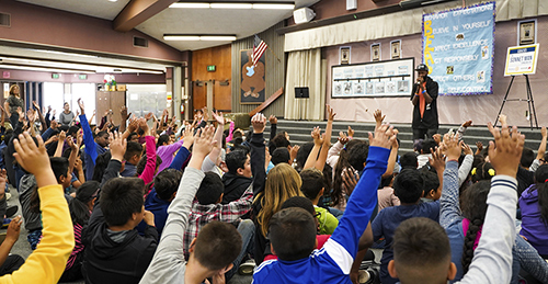 The Brooklyn native, who is performing in the annual UC Merced presentation of Shakespeare in Yosemite later this month, has performed all over the world. This week he brought his rap game to local students, hosting six school assemblies in Merced County. Glover spoke to over 1,000 students of all ages, ranging from third through 12th grade, at schools of all sizes, such as Washington Elementary School in Winton, a kindergarten through eighth-grade school of fewer than 200 students.