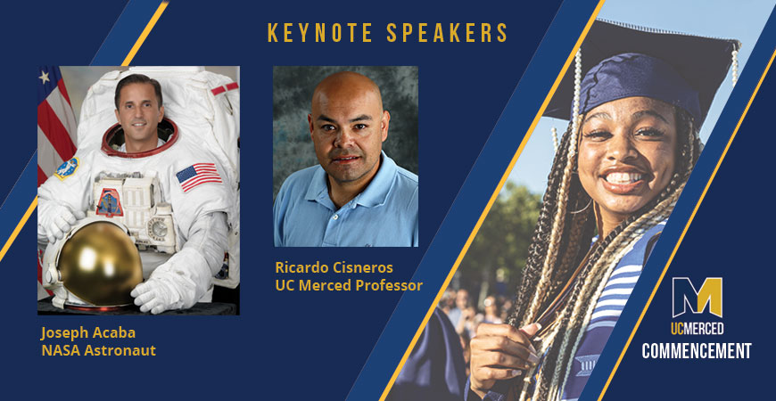 NASA astronaut Joseph Acaba will address ceremonies for undergraduates from UC Merced’s three academic schools Saturday and Sunday. Ricardo Cisneros, a UC Merced professor who earned the young university’s first Ph.D. in 2008, will inspire graduate students Friday.